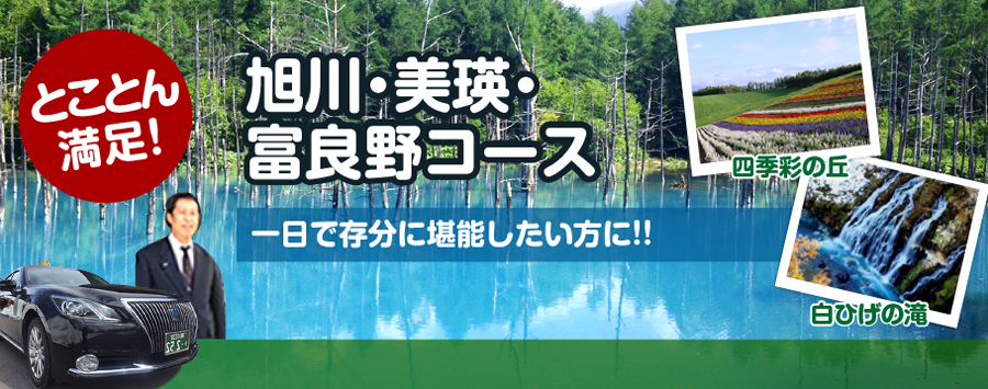 旭川・美瑛・富良野を一日で堪能し尽くすコースのご紹介です。6〜8月の北海道の夏の自然が味わい尽くせるこの時期に、お客様が行きたいところを、コースの範囲内であればどこでもエスコート致します。