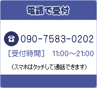 2.電話での予約お問い合わせは受付時間11~21時までのご連絡お待ちしております。